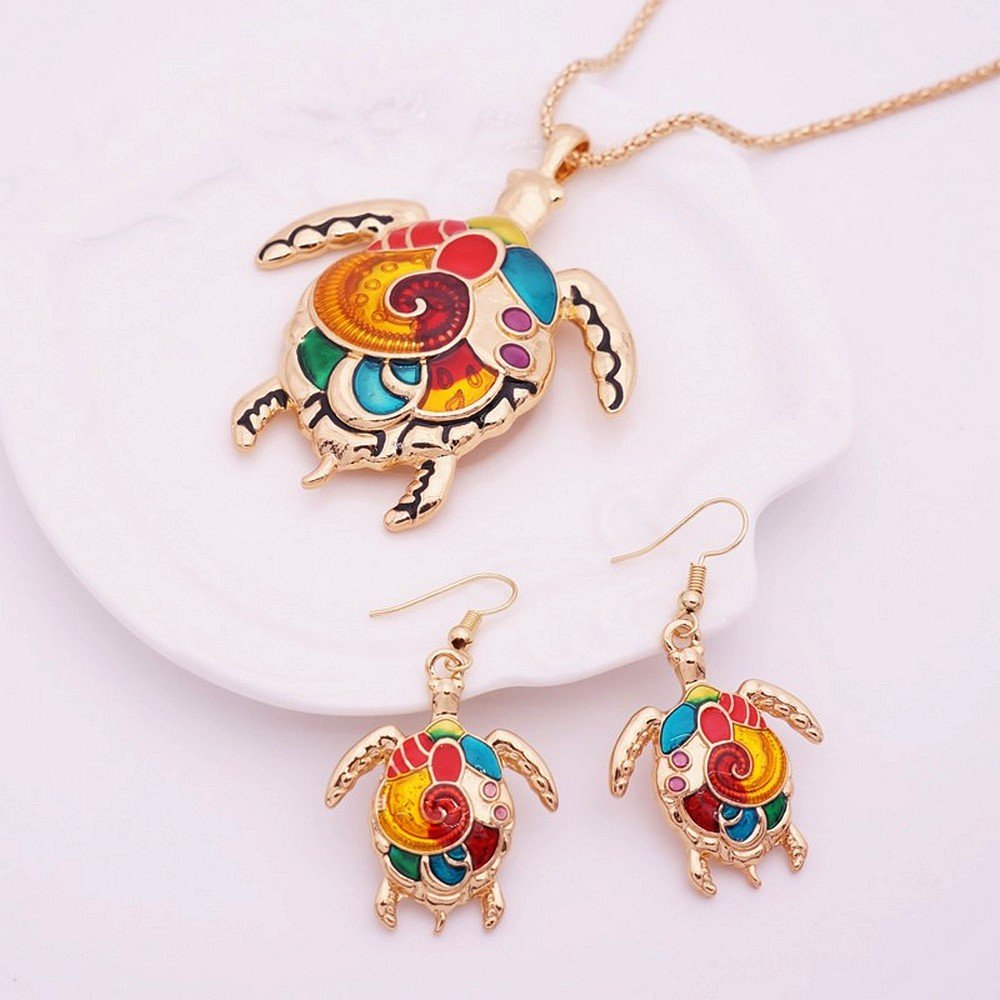 ♦ Alloy pendant style for necklace and earring set with multicolor enamel design ♦ Ocean series styles to choose from Crab, Turtle, Star Fish and Dragon fly ♦ Perfect for Gifting. Ideal for casual wear, party wear. ♦ Comes in set of 3 pieces ♦ Color – Gold ♦ ♦ Package include 1x necklace 1 pair ear pendants in PP bag