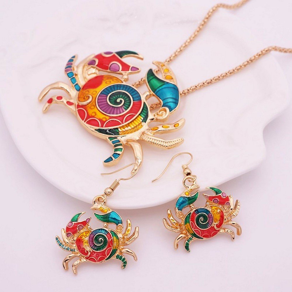 Introducing the Ocean Enamel Necklace Pendant Earring Set the perfect accessory to show off your love for ocean animals! This beautiful set includes a necklace pendant and a pair of earrings. And in fact with stunning enamel designs featuring creatures like crabs, turtles, starfish, and dragonflies.