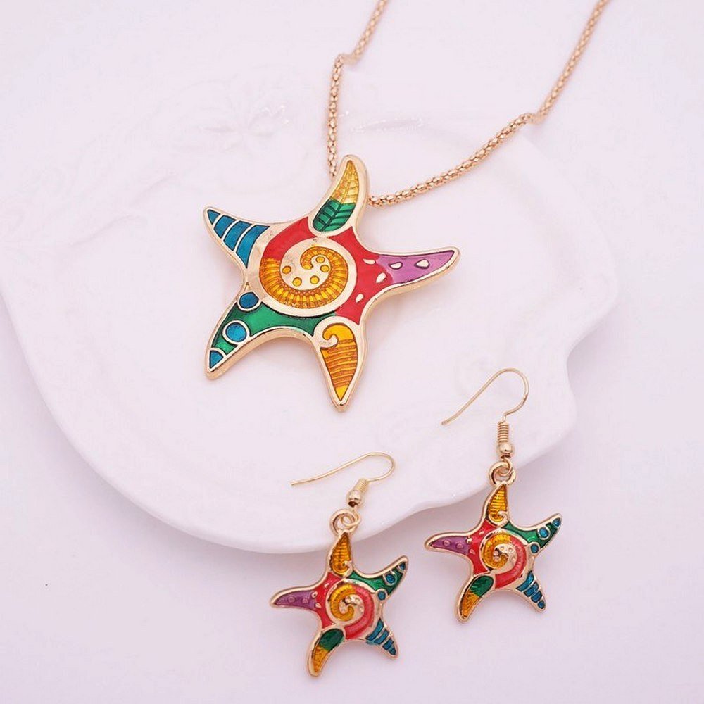Ocean Enamel Necklace Pendant Earring Set for Girls